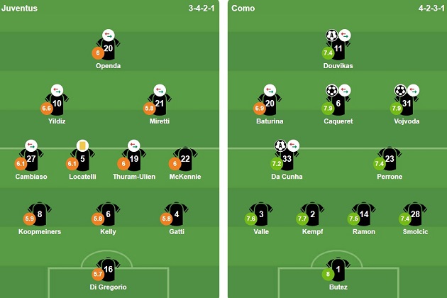Chỉ số Pha lập công kỳ vọng (xG) khiêm tốn 0.70 so thông qua 1.41 của Como từng phản ánh đúng cục diện bế tắc kèm theo thiếu sáng tạo của đội chủ nhà. Kenan Yildiz được xem là điểm sáng hiếm hoi cùng những nỗ lực cá nhân, dẫu vậy sự đơn độc của anh không đủ hòng vực dậy một tập thể hiện đang rệu rã.